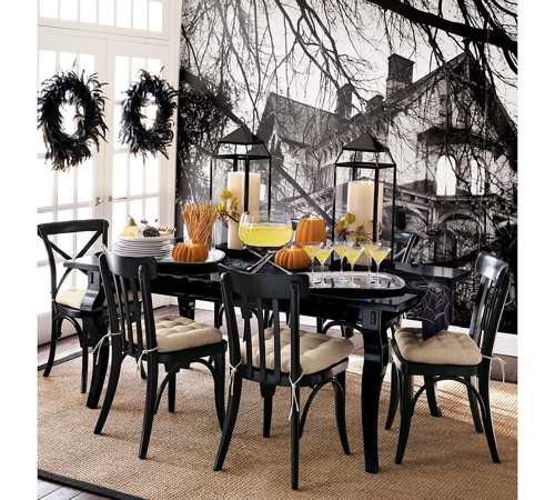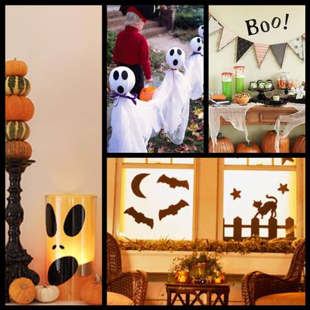 A decoração da casa deve se basear nas cores: preto, roxo e laranja. Abóboras desenhadas, caveiras, teias de aranha, bichos de plástico, balões coloridos, guardanapos coloridos (preto, laranja e roxo) e as velas fazem parte da composição para essa data.