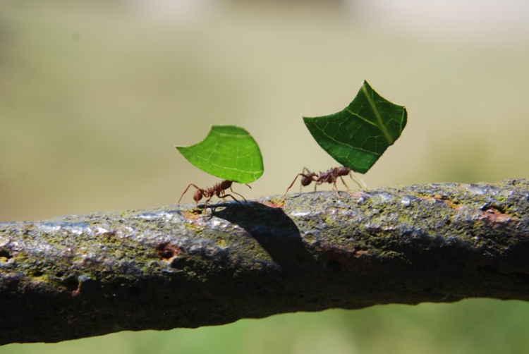 As formigas são as vilãs de muitos jardins. Elas cortam pedaços das plantas e levam para o formigueiro para alimentar a colônia.